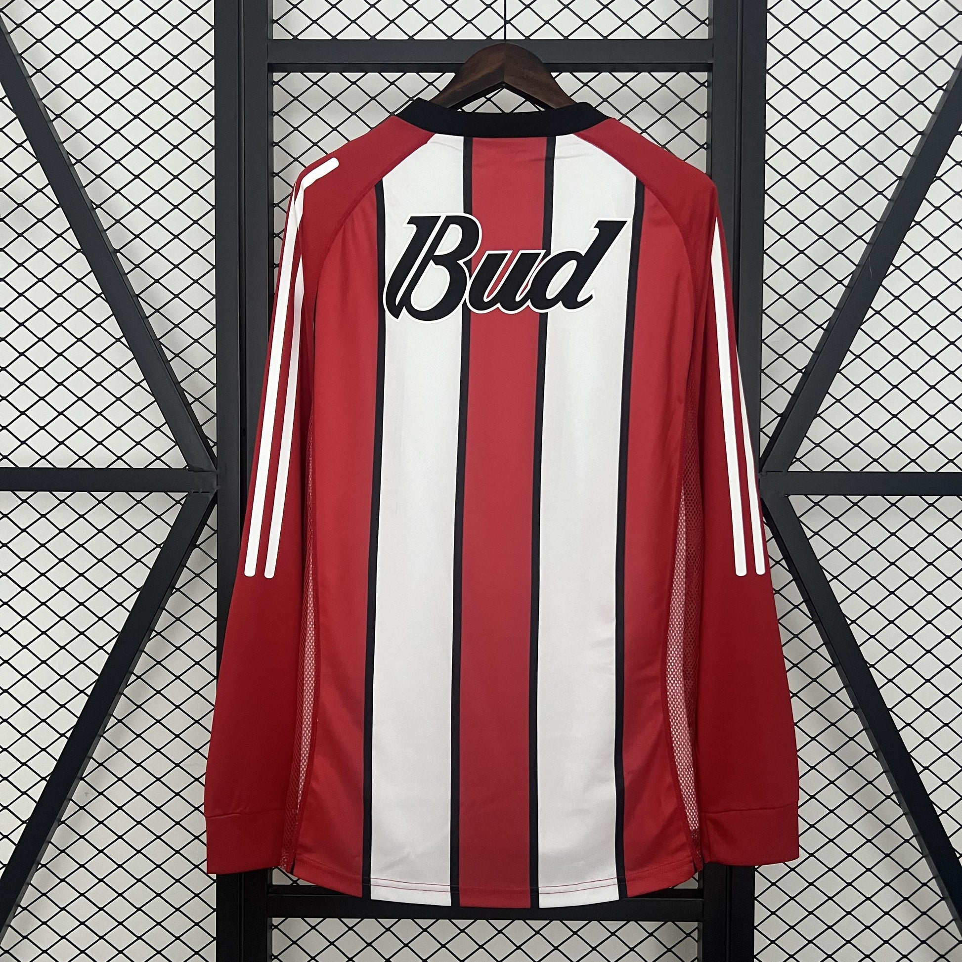 Unleash your sporty spirit with the River Plate 2003-04 Away jersey. This classic design boasts the iconic River Plate logo and vibrant colors to show off your team pride on or off the field. Made with high quality materials, this jersey ensures optimal comfort and performance.